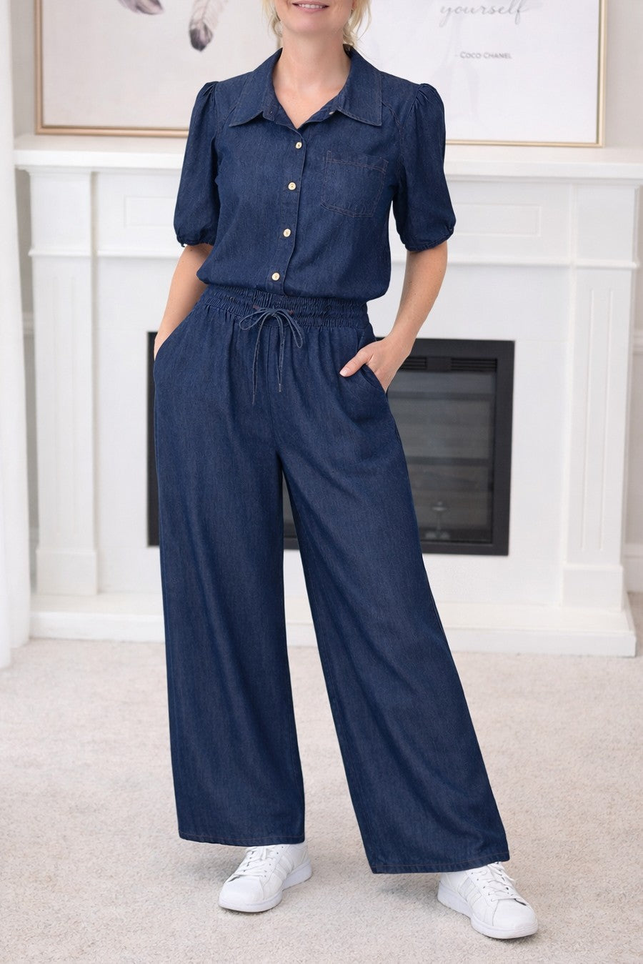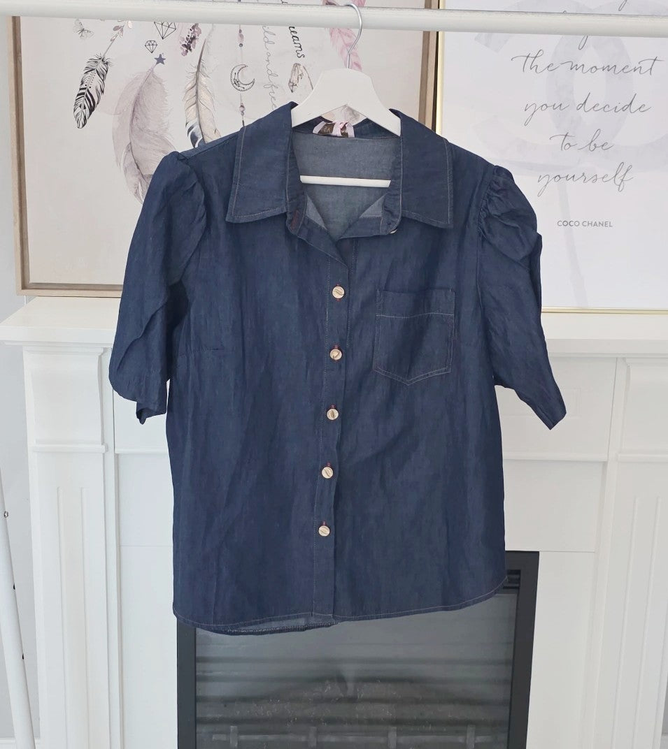 Edle Bluse Denim Look mit Puffärmel Art:4713