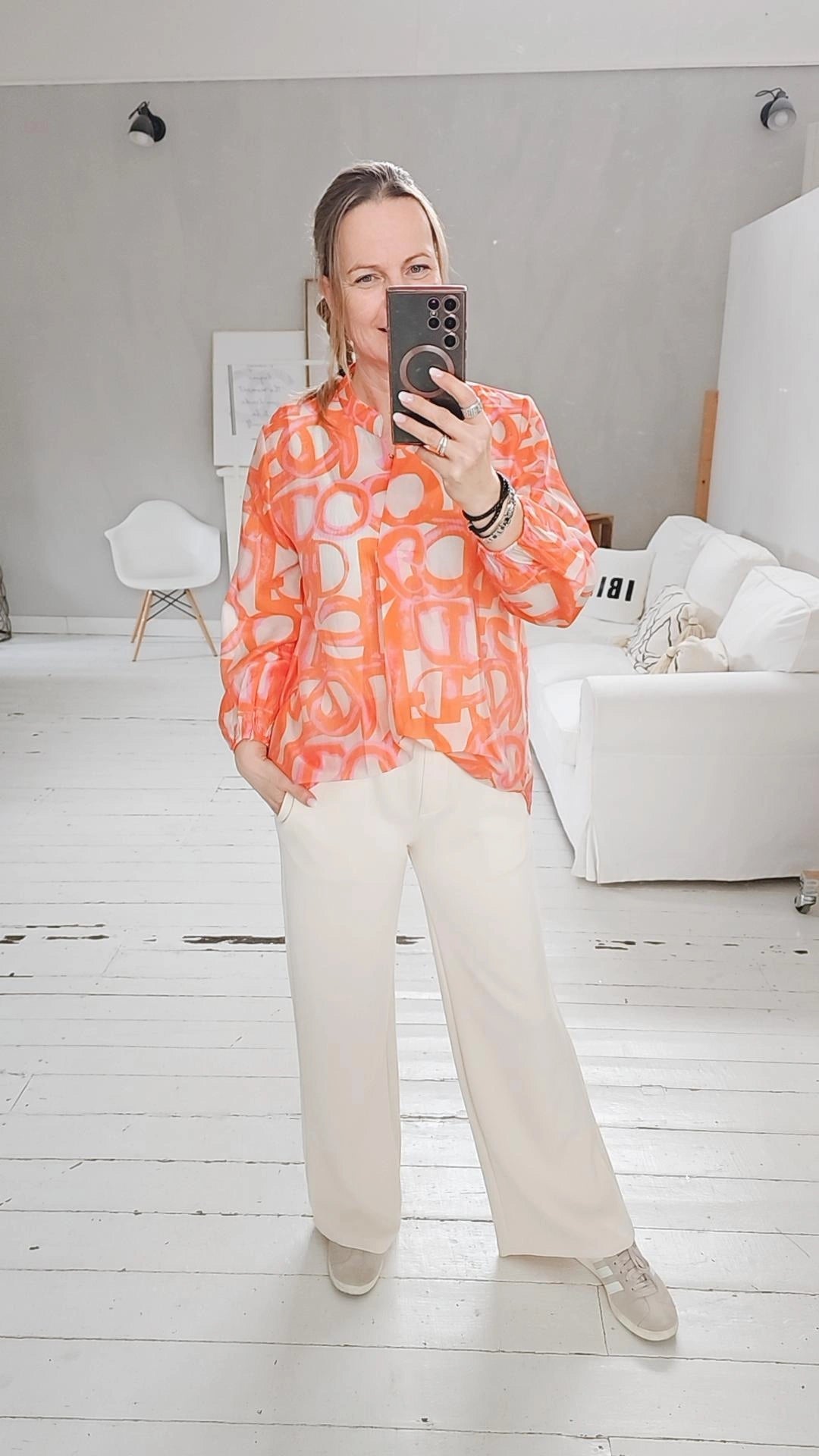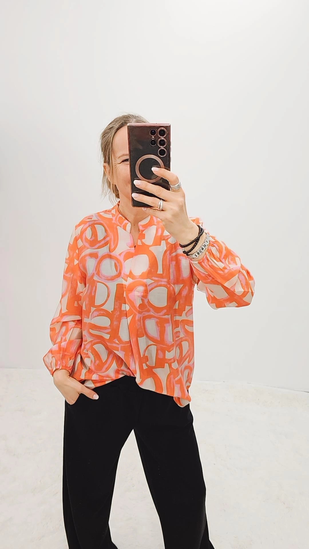 Wir empfehlen Handwäsche und die Bluse darf nicht in den Trockner.