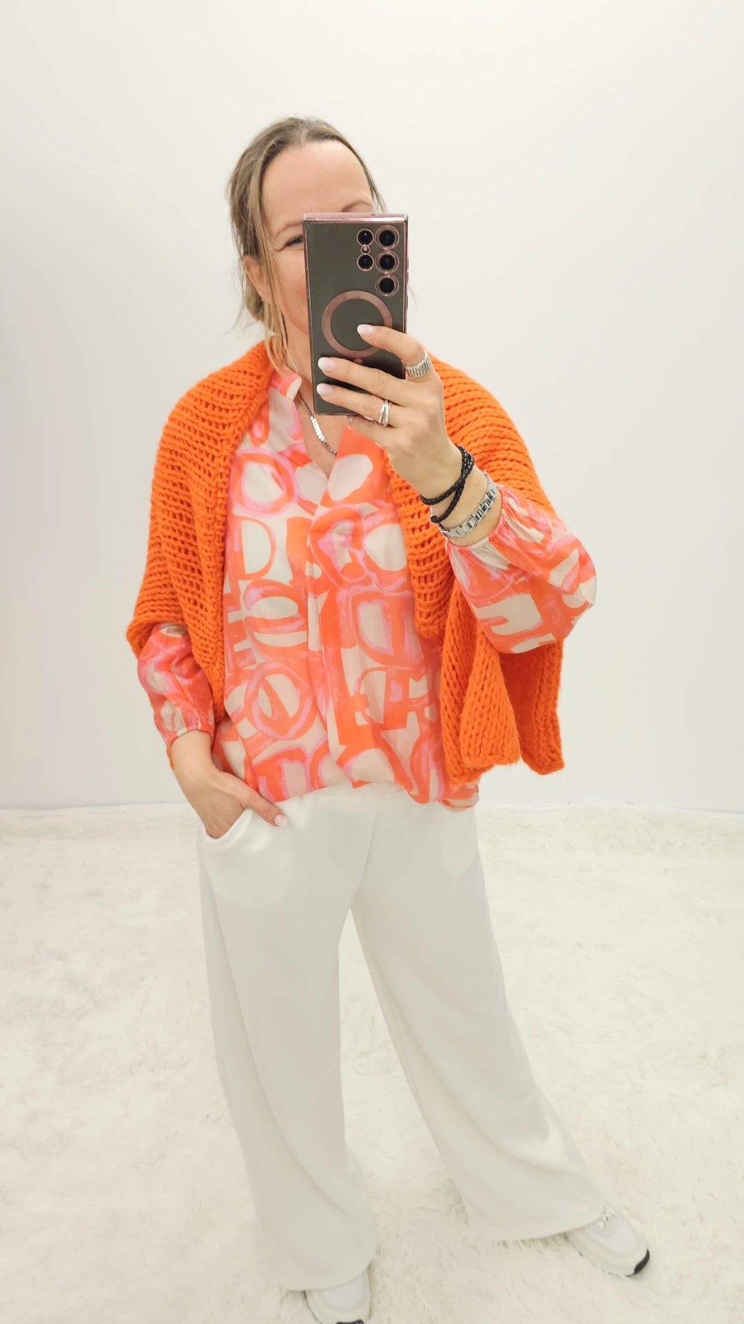 Das Model auf dem Bild ist 1,70 m groß und trägt Größe 38.