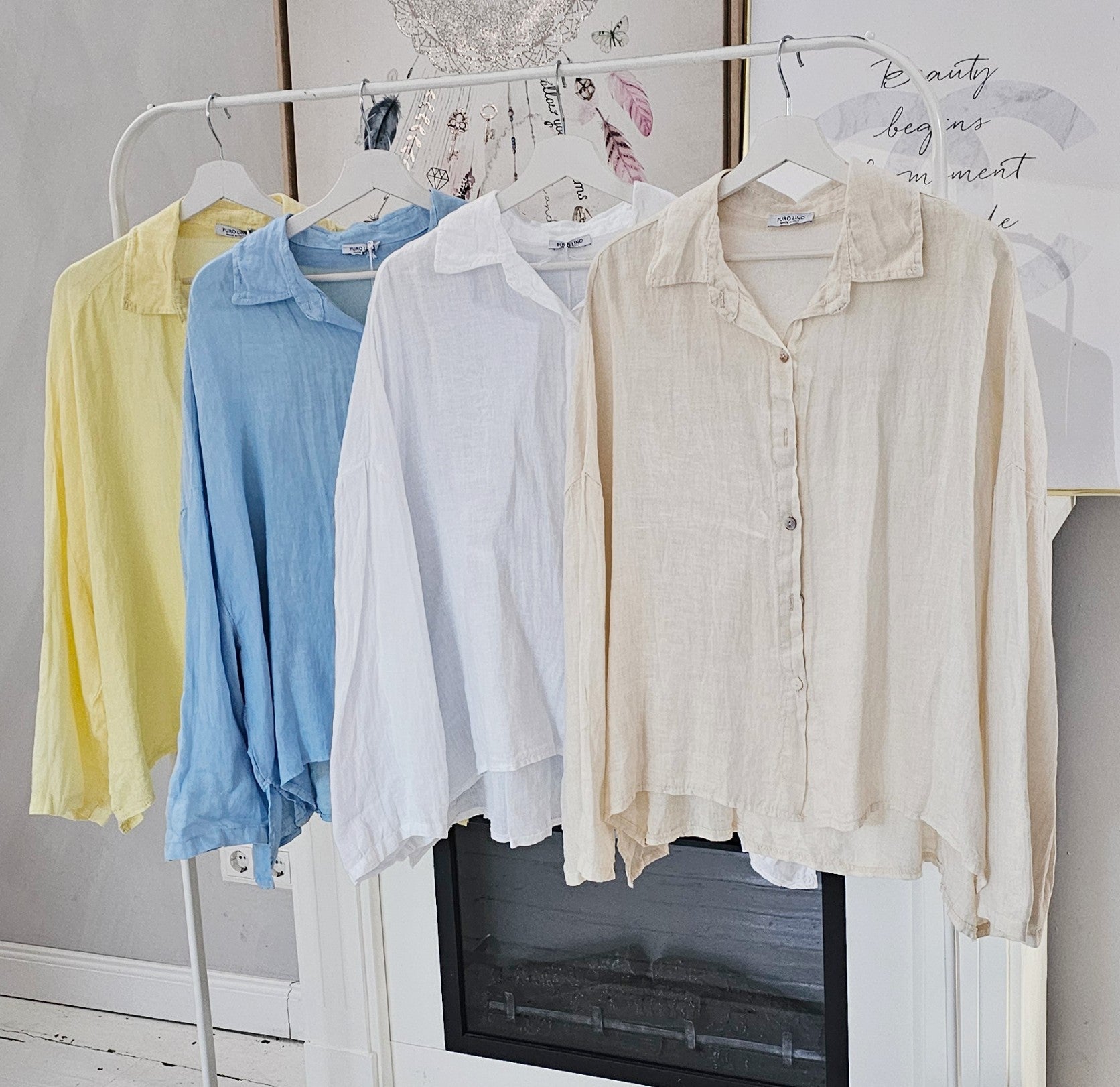Locker geschnittene Leinenbluse aus leichtem, atmungsaktivem Material. Die klassische Knopfleiste und der entspannte Schnitt sorgen für einen lässigen und zeitlosen Look. Ideal für warme Tage und vielseitig kombinierbar – perfekt zu Jeans, Stoffhosen oder Röcken.