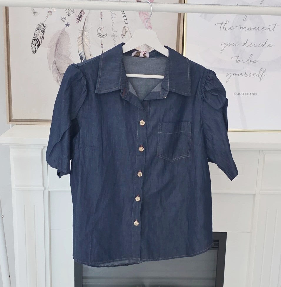 Edle Bluse Denim Look mit Puffärmel Art:4713