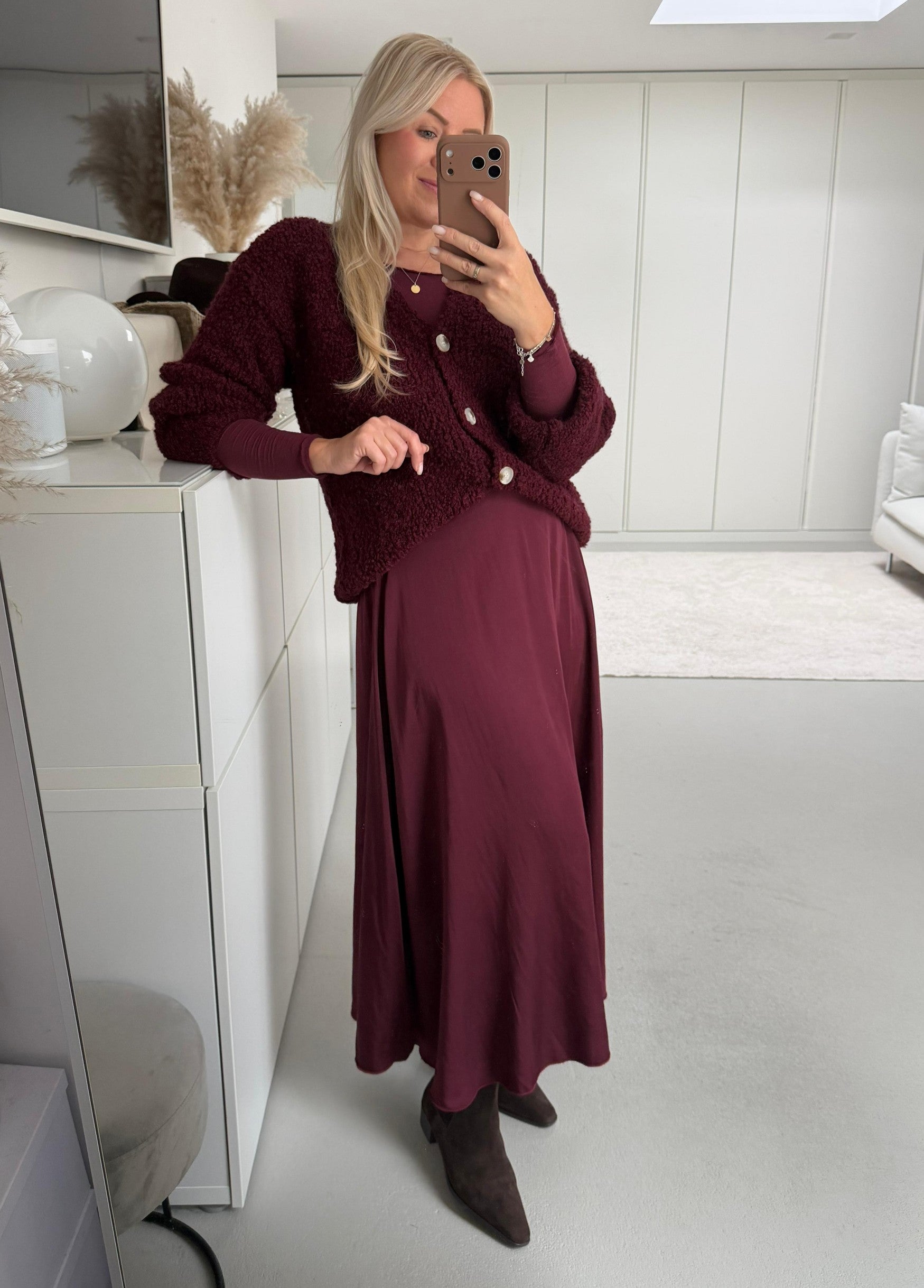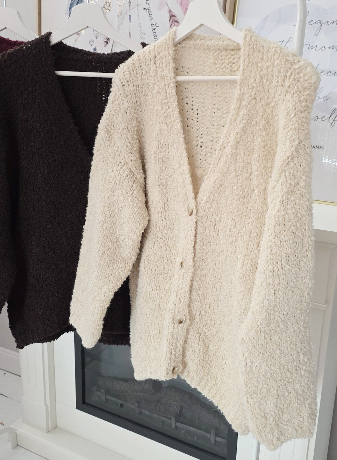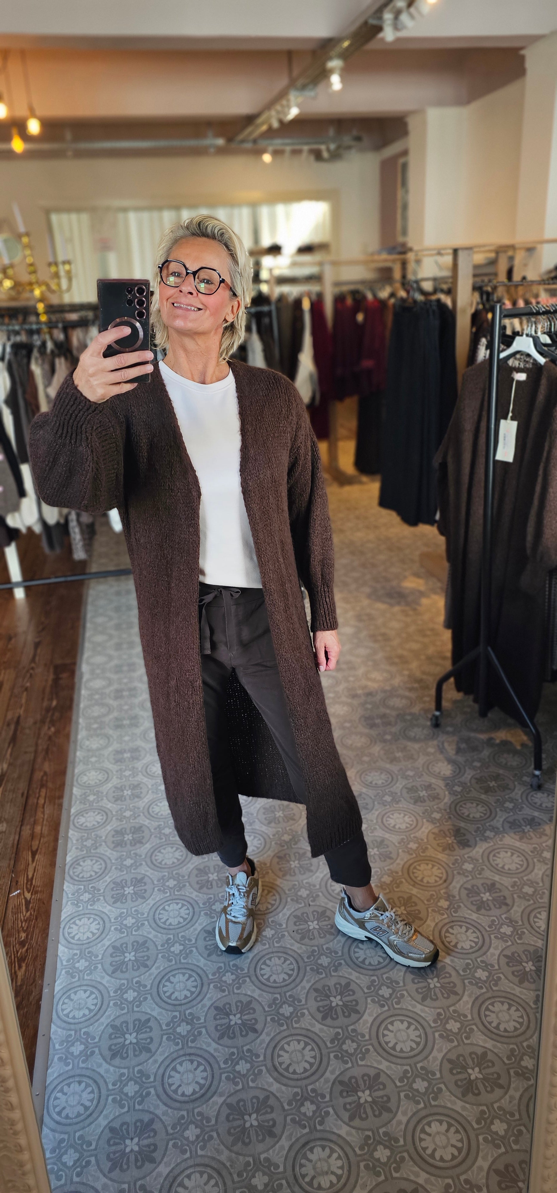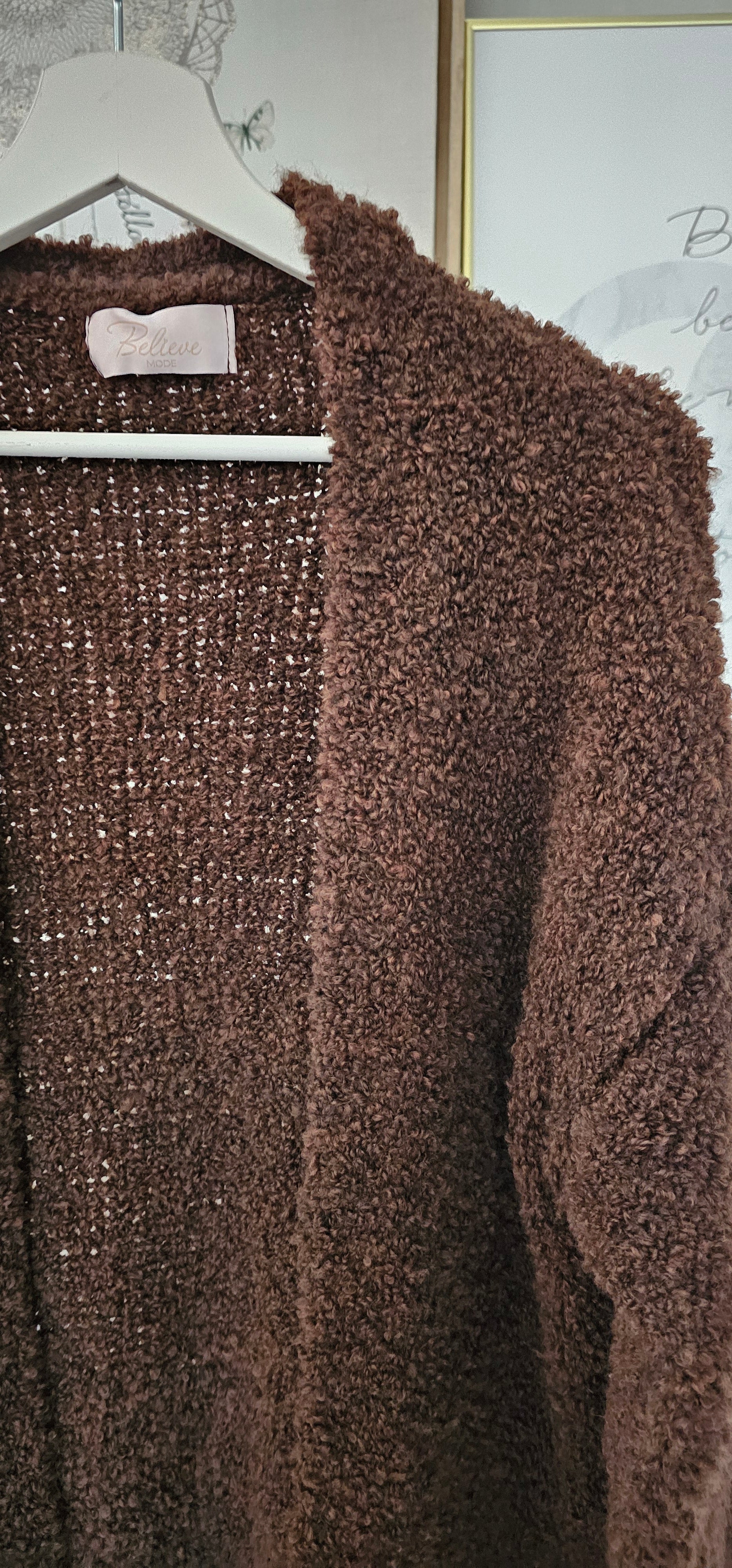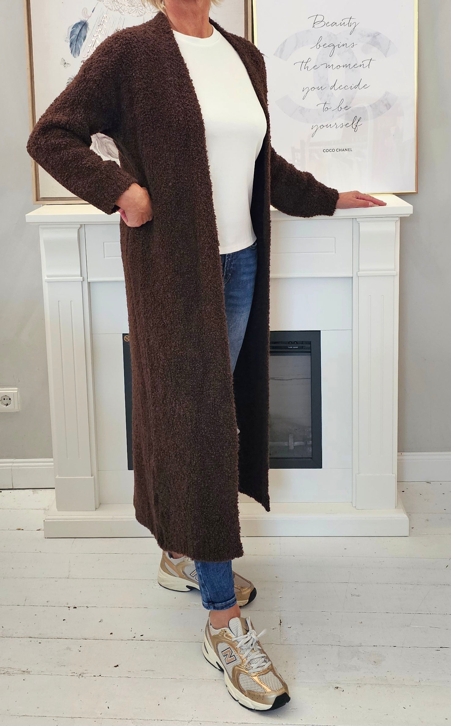 Kuscheliger Bouclé Cardigan lang Art. 4251 schokobraun