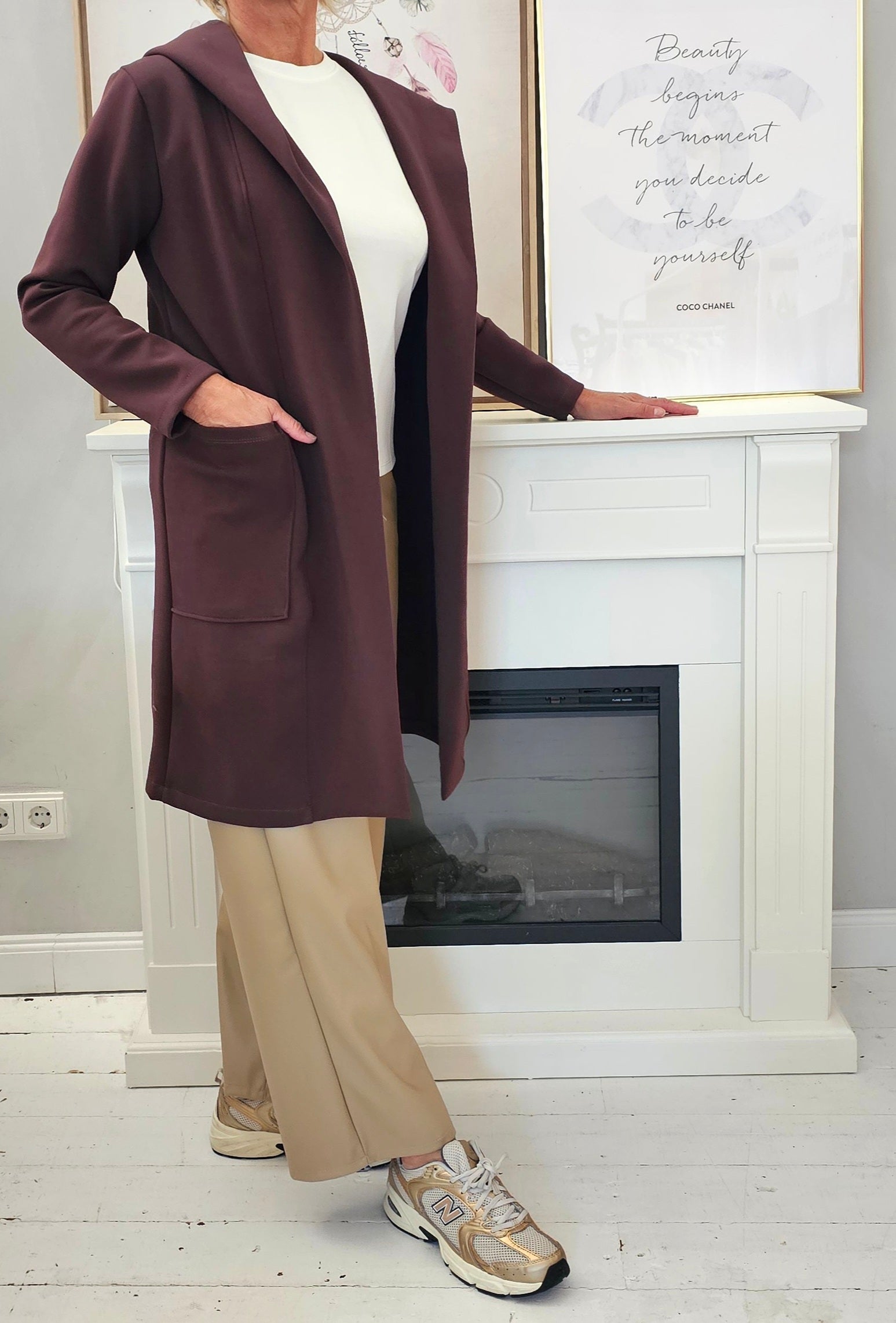 Edler Sweat Mantel mit Kapuze Art. 4252 schokobraun