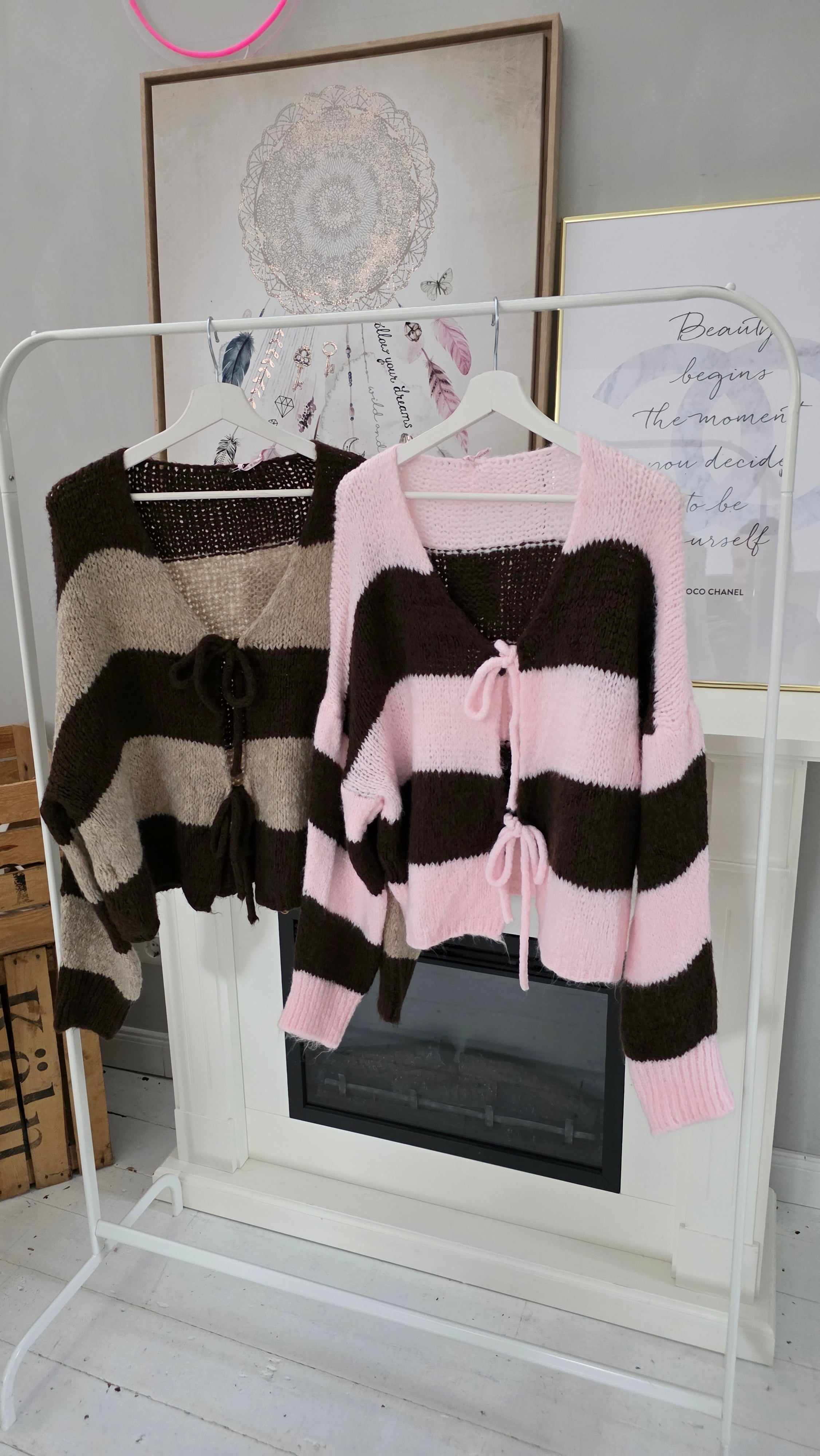 Kuscheliger Striped Cardigan mit Schleife Art. 4197