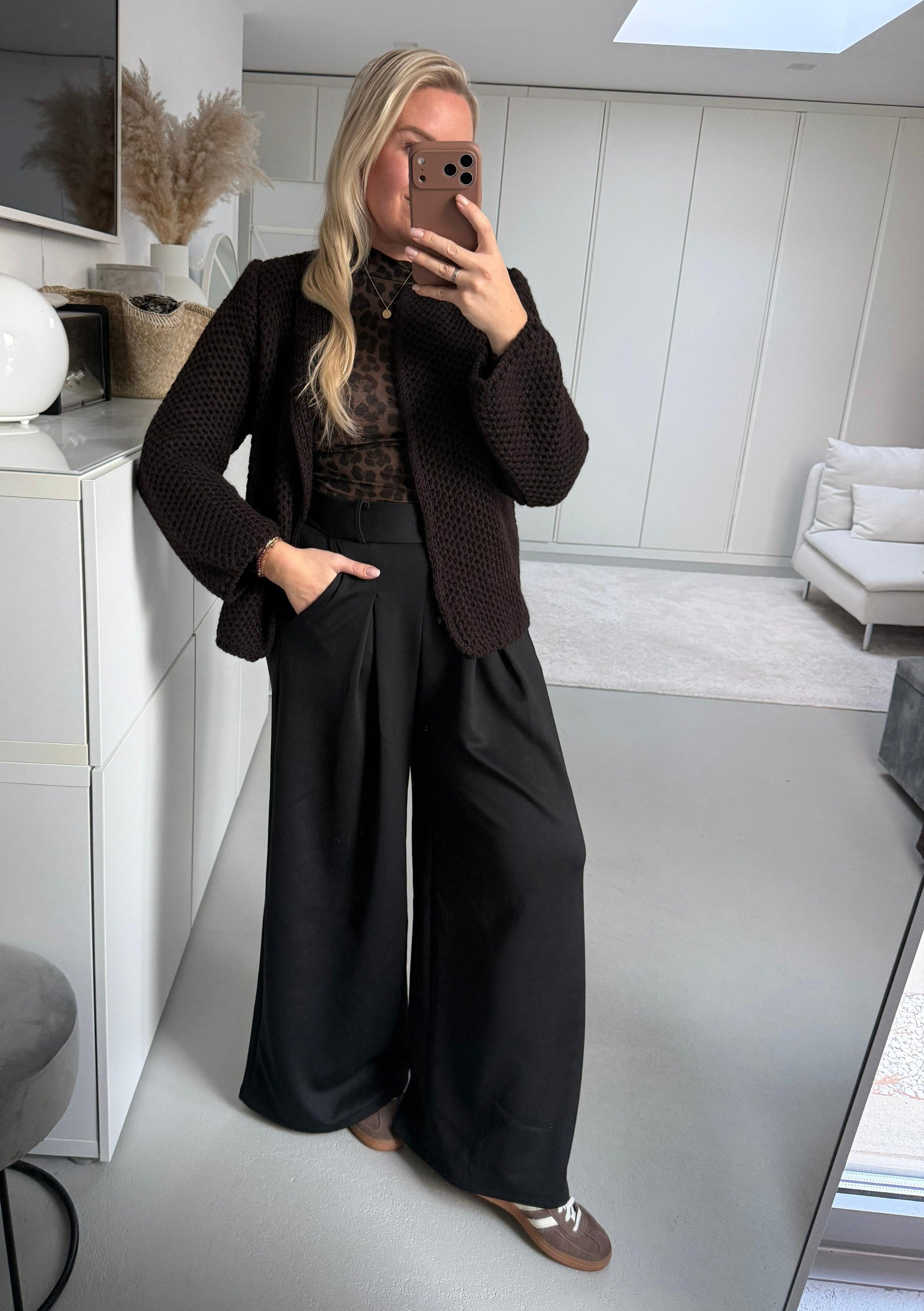Fluffy Cardigan lang Art. 4253 schokobraun