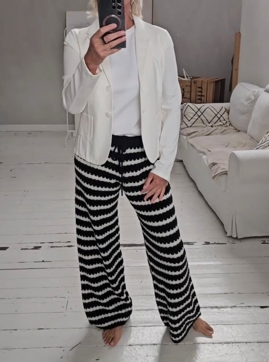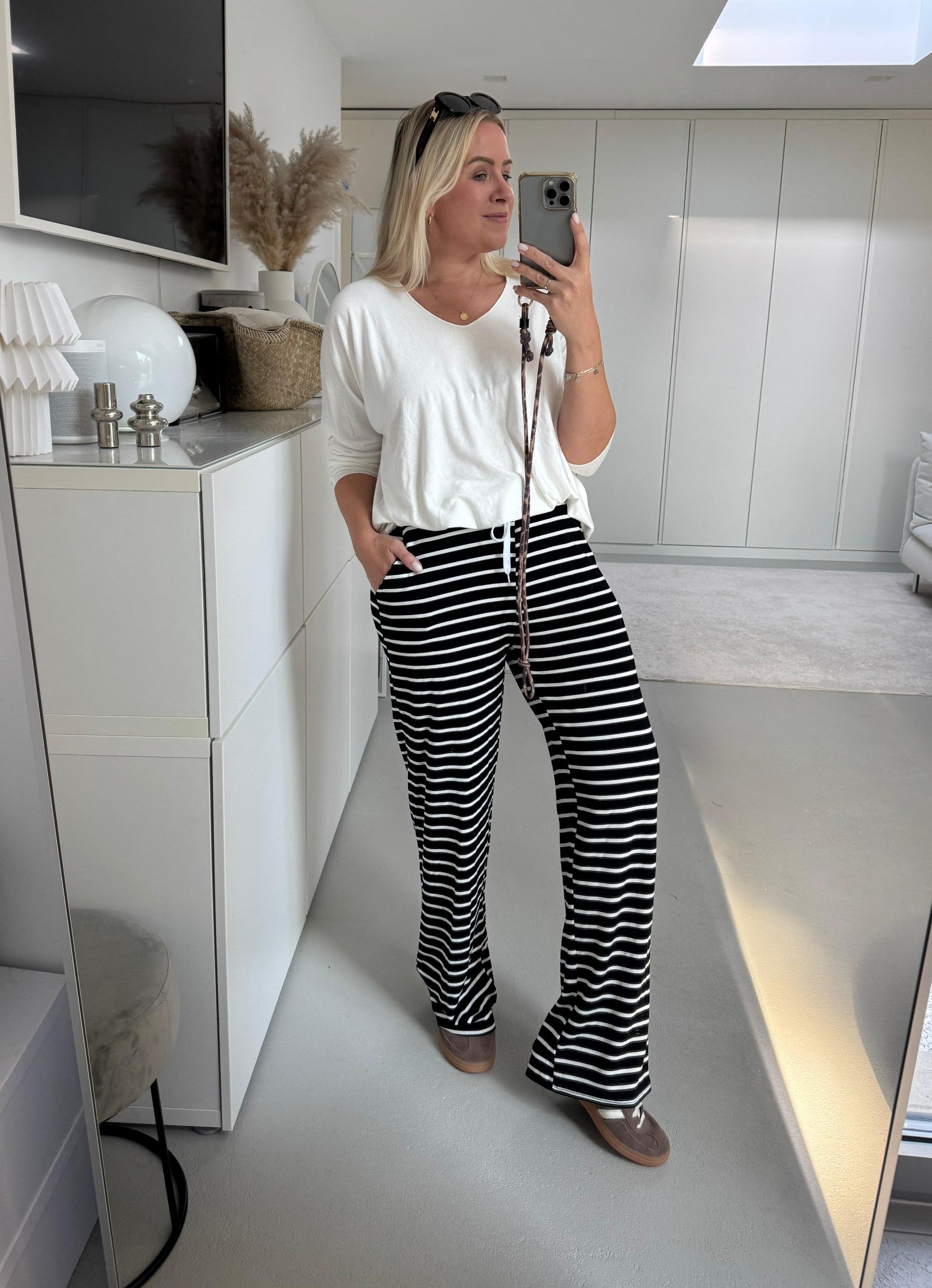 Lässige Streifenhose schwarz-weiß