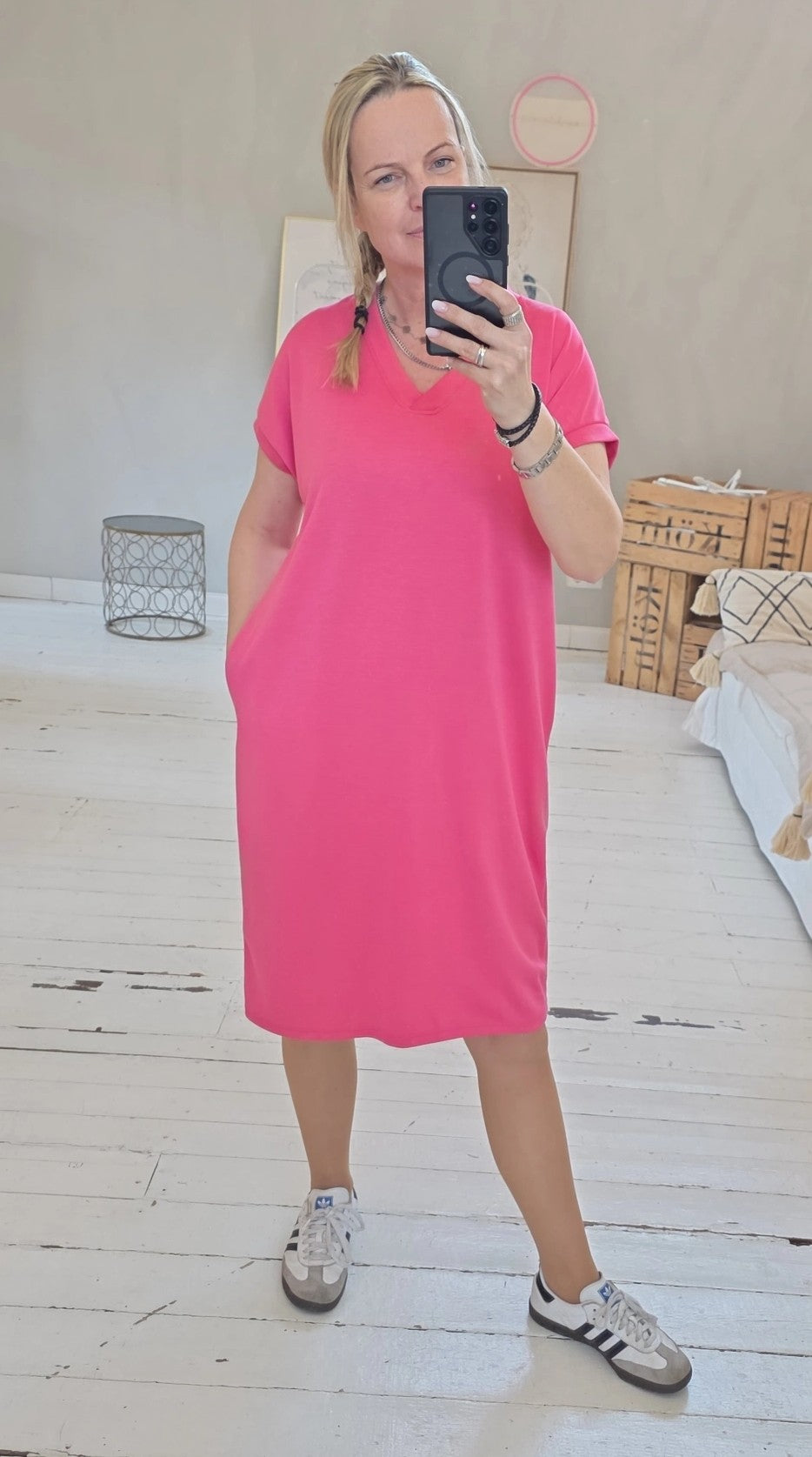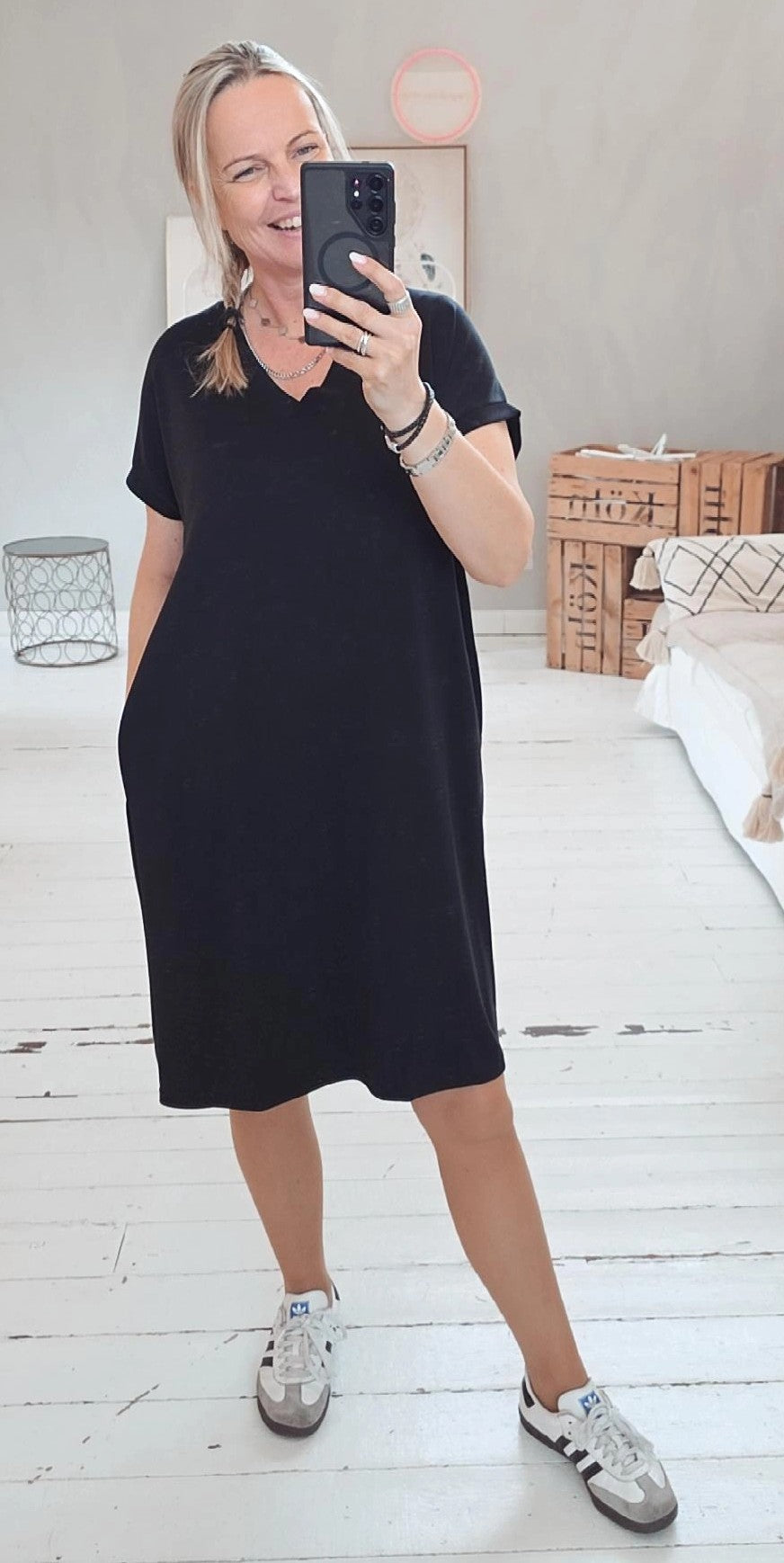 Stilvolles und bequemes Basic Kleid mit V-Ausschnitt kurzarm