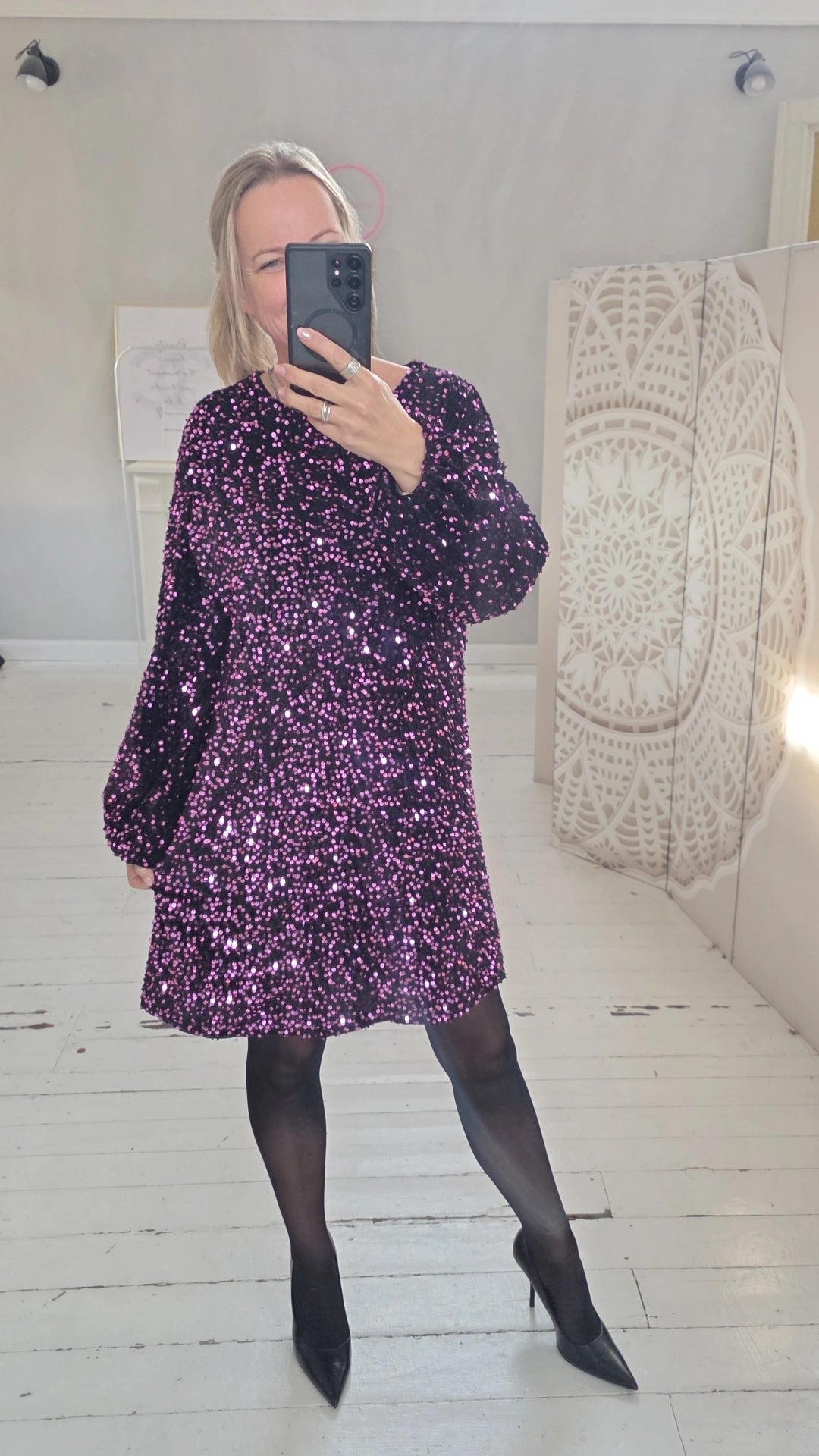 - Die glitzernden Pailletten verleihen dem Look eine luxuriöse Note,
