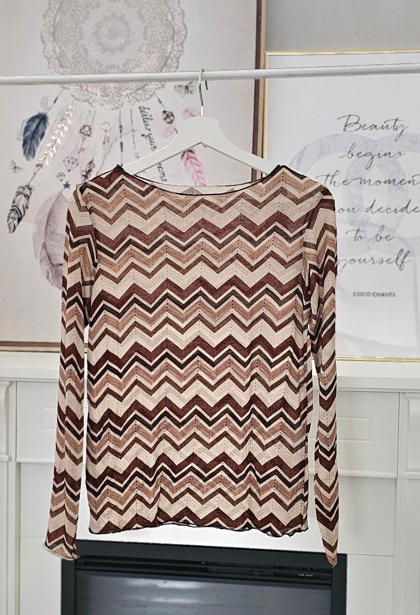 Stripes Vokuhila Longsleeve mit Fledermausärmeln Art:4248 Cappuccino