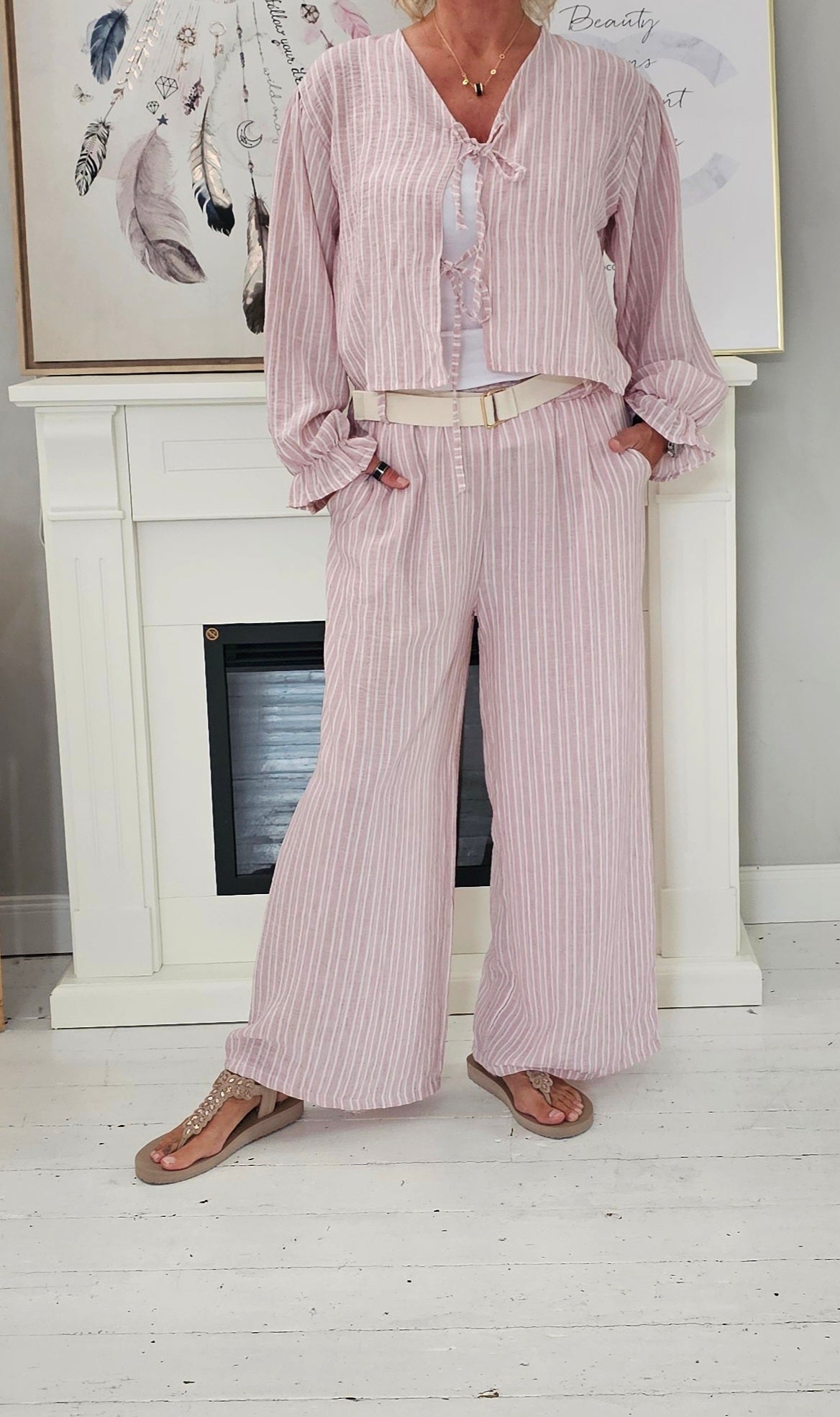 Blusen Cardigan Stripes mit 3 Schleifen zum binden und Rüschenärmeln