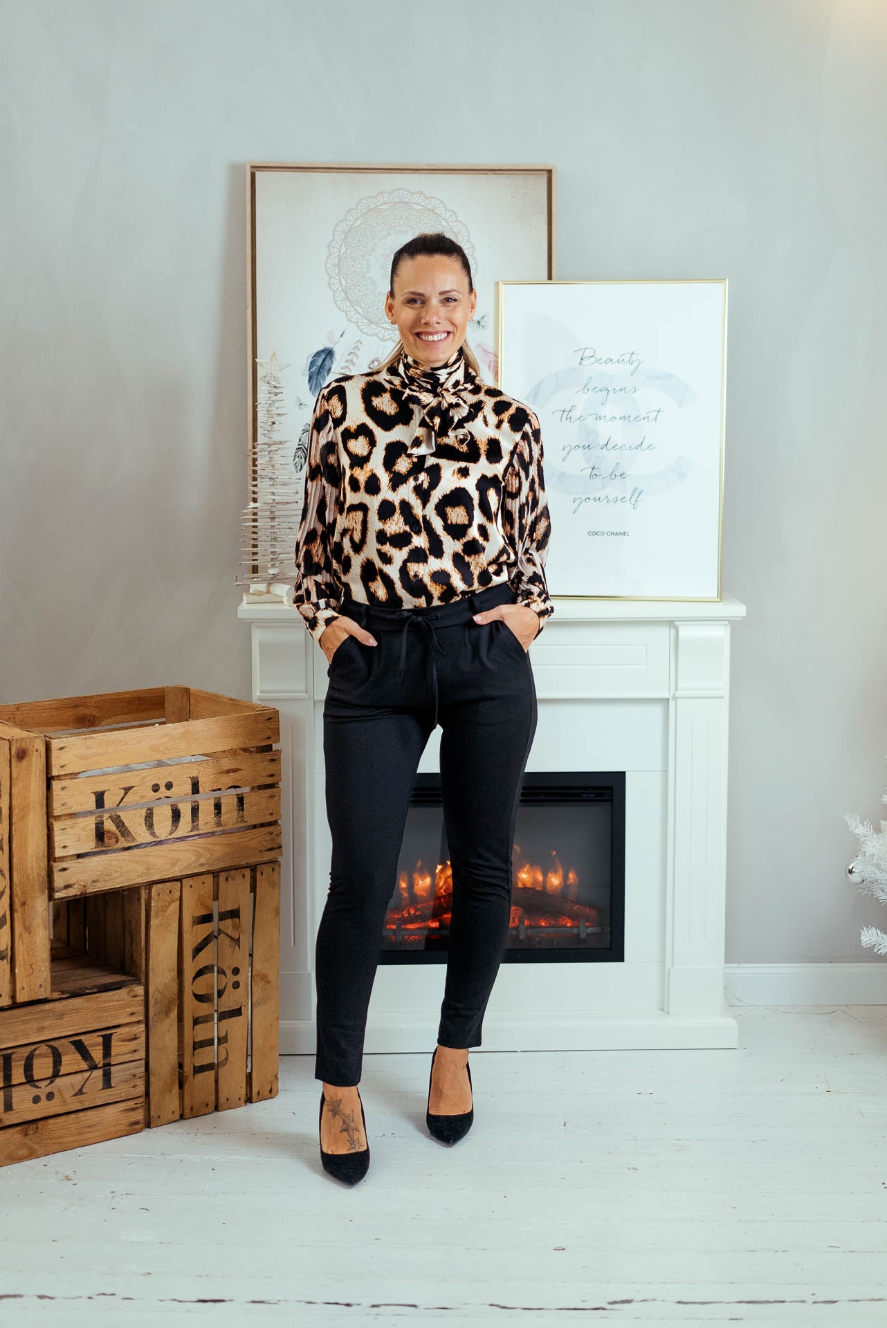Deluxe Leo Bluse mit Schleife am Ausschnitt – Ideal für die Glamour Fest Tage.