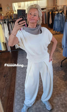 Dieser Pullover mit zarten Flügelärmeln verleiht jedem Outfit eine feminine und moderne Note. Die weich fallenden Ärmel umspielen sanft die Schultern und sorgen für eine schmeichelhafte Silhouette. Der angenehme Feinstrick fühlt sich weich auf der Haut an und bietet hohen Tragekomfort – ideal für Alltag, Büro oder besondere Anlässe.