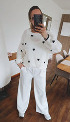 Strickpullover Heart mit Rundhalsausschnitt und weißen Herzen