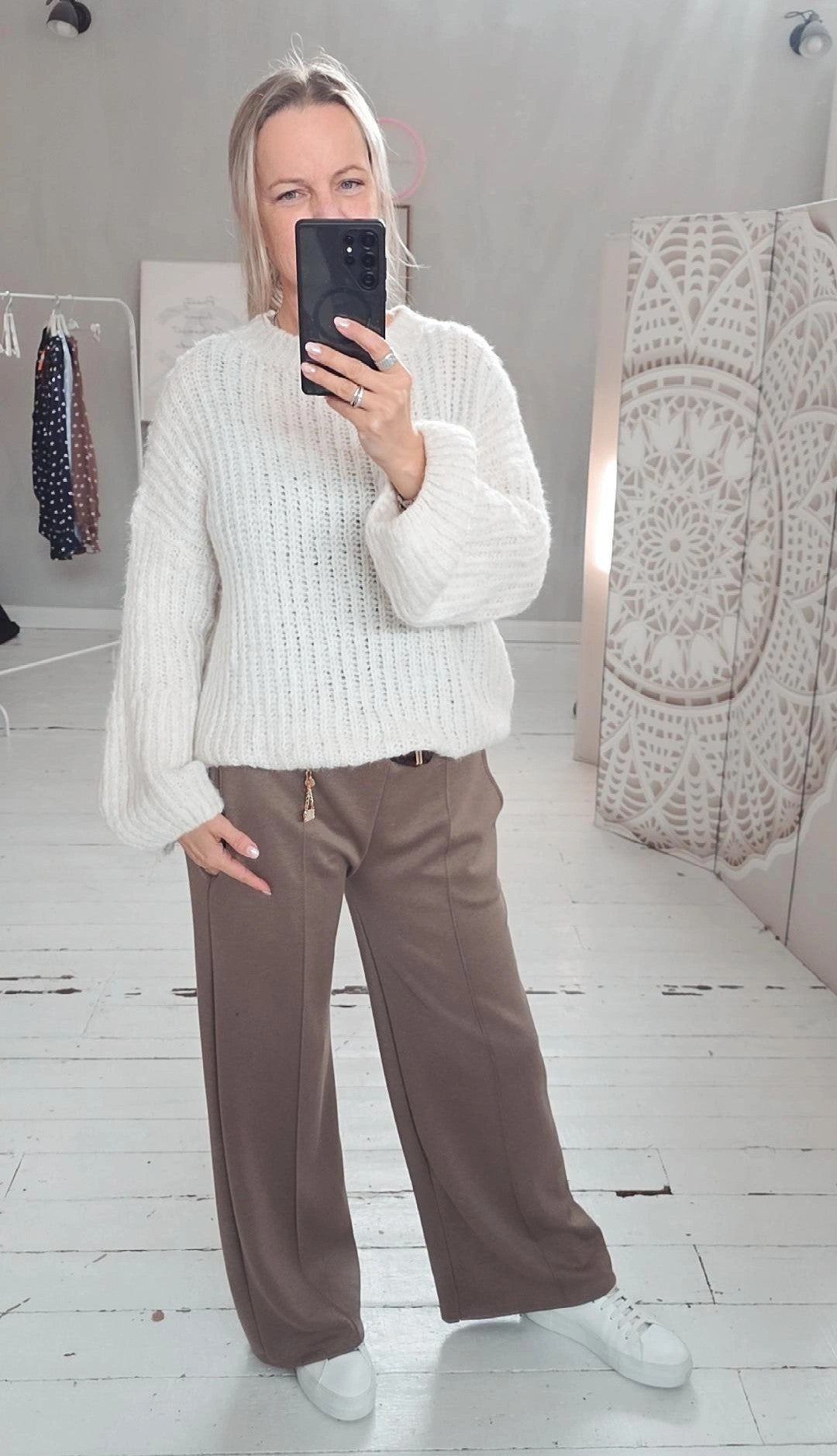 Der bequeme Schnitt bietet viel Bewegungsfreiheit und lässt sich vielseitig kombinieren – ob lässig zur Jeans, elegant zum Rock oder entspannt über einem Kleid. Ein Must-have für alle, die Gemütlichkeit und Stil harmonisch verbinden möchten.