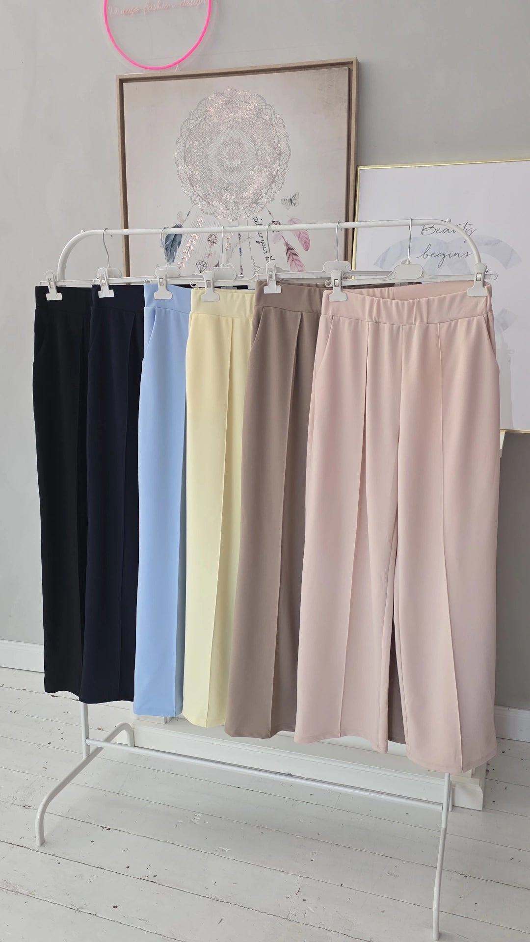 Der luftige Stoff fällt weich und schmeichelt der Figur, während das weite Bein für eine moderne Silhouette sorgt.