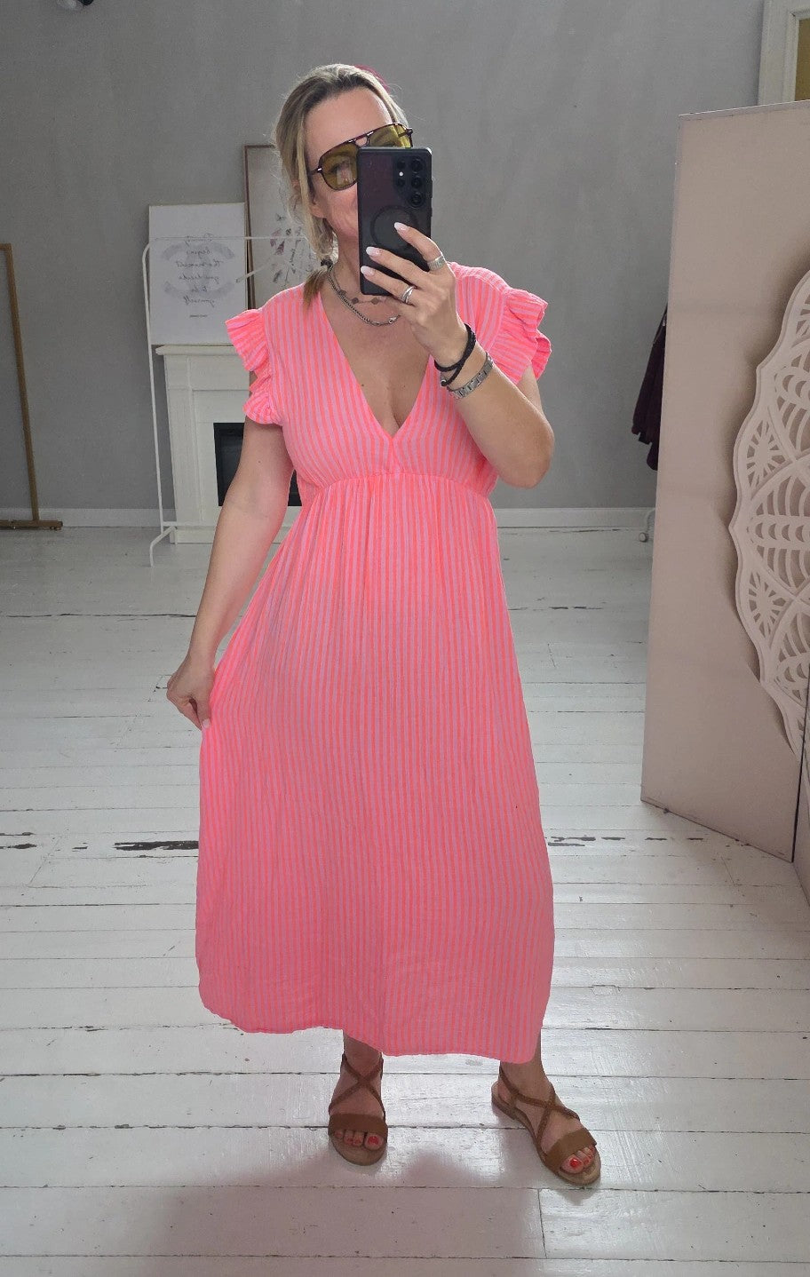 Musselin Kleid Flügelarm mit Streifen versch. Farben Art.4789