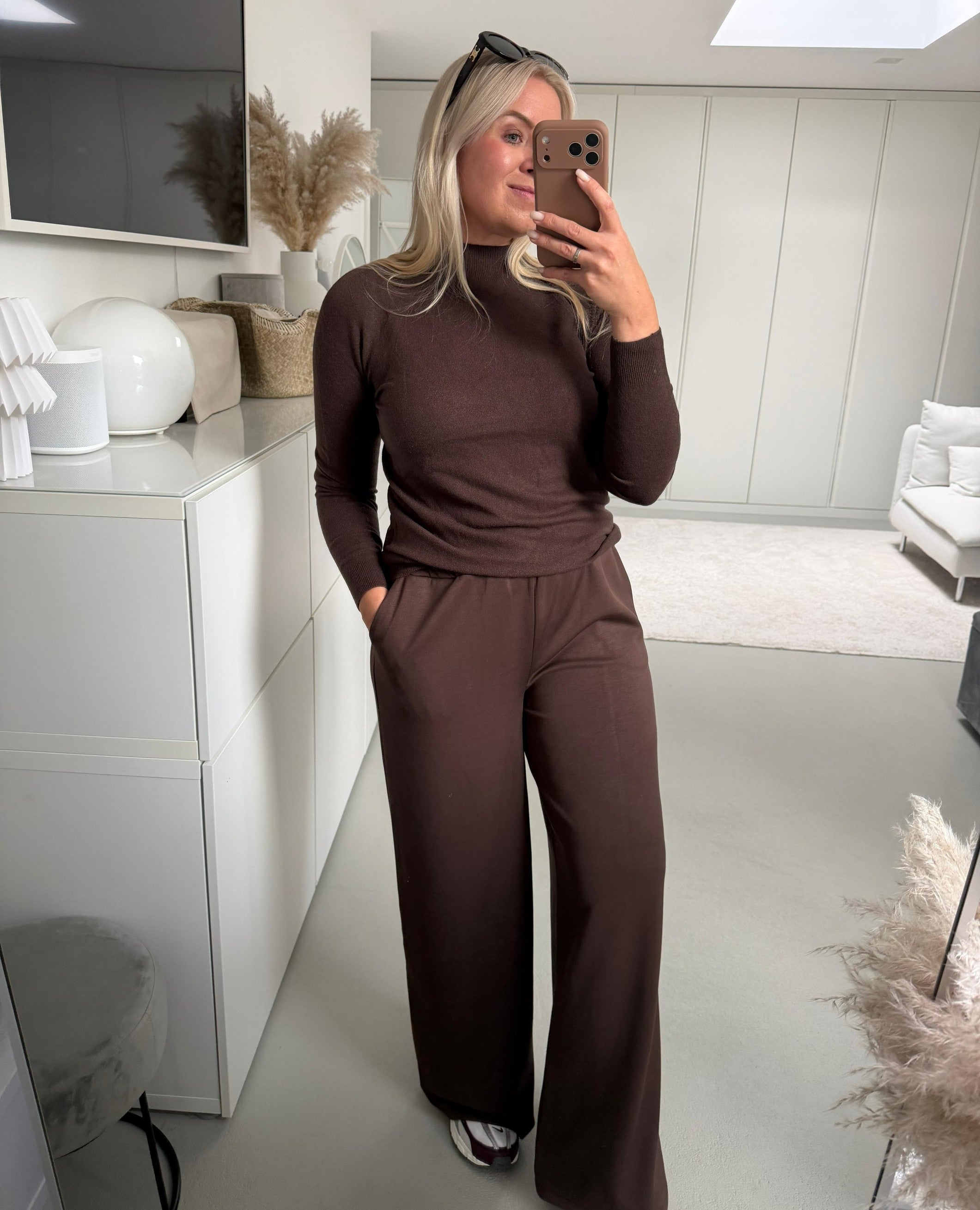 Elegantes Longsleeve Kleid mit Plissee Rock Art. 4256 schokobraun
