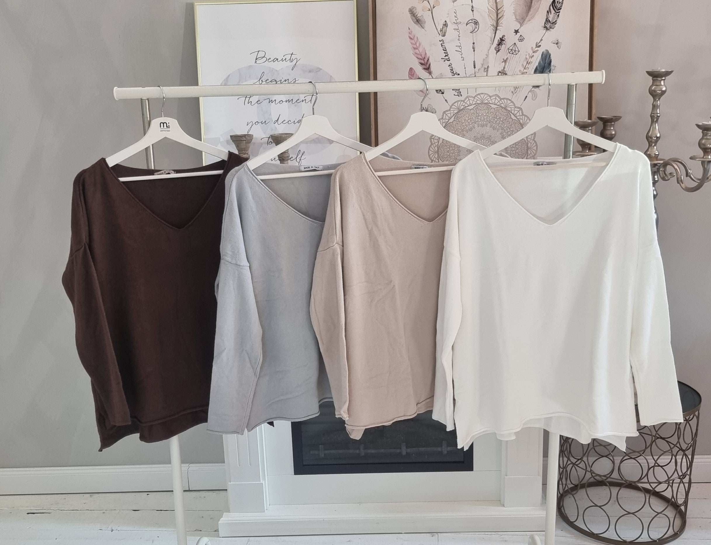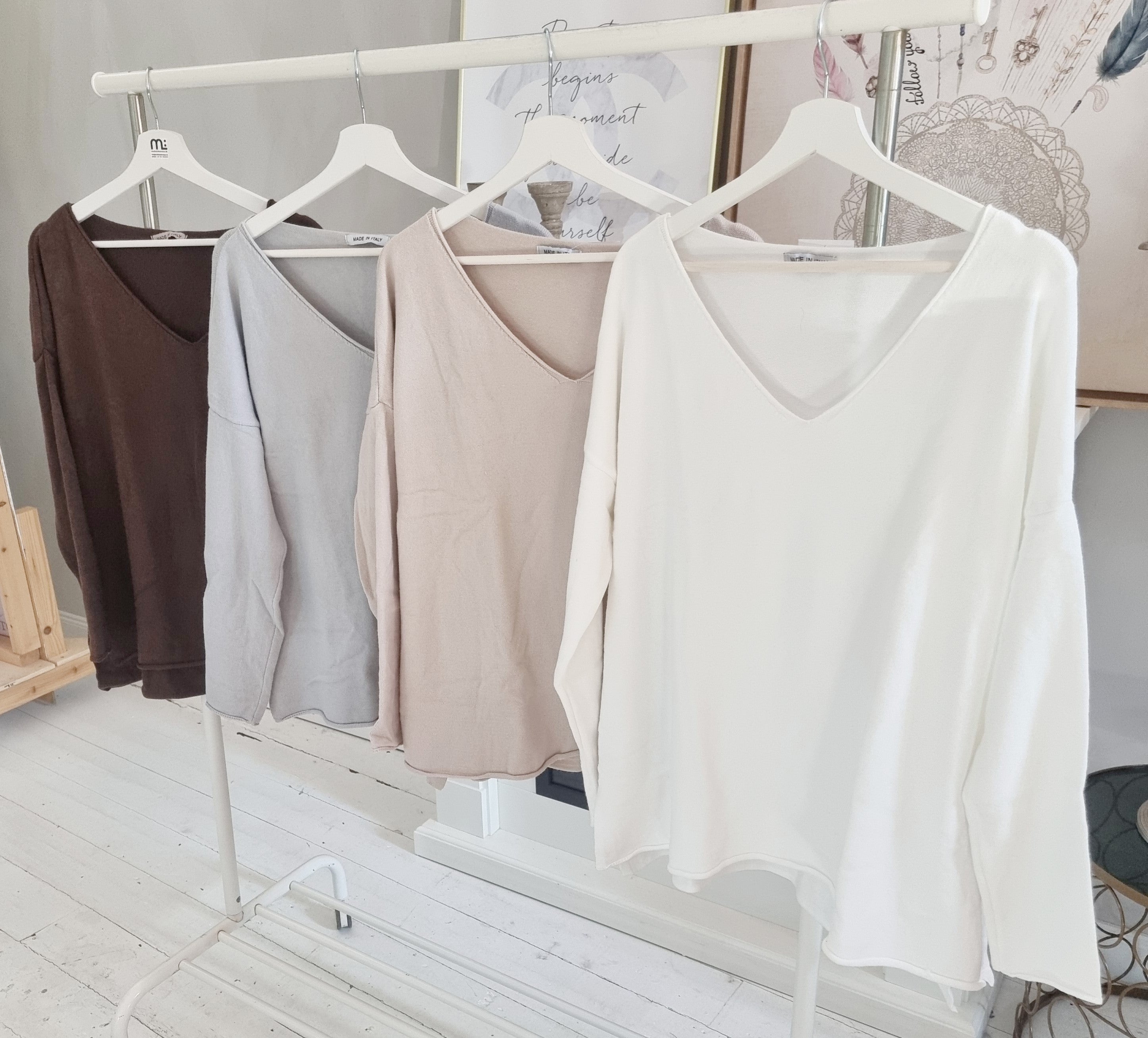Softer Pullover Springtime in vielen schönen Farben. Dieser schmal geschnittene Pullover mit V-Ausschnitt ist weich und angenehm zu tragen. Er ist hinten länge als vorne. Der untere Saum ist leicht gerolt. One Size (passt Grösse 36- bis schmale 42) Maße: Länge ab Schulter vorne: ca.: 62 cm Länge ab Schulter hinten: ca. 69,5 cm Brustweite von Achsel zu Achsel:ca: 67cm Material: 95% Viskose, 5% Modal Pflegehinweis: 30° Wäsche