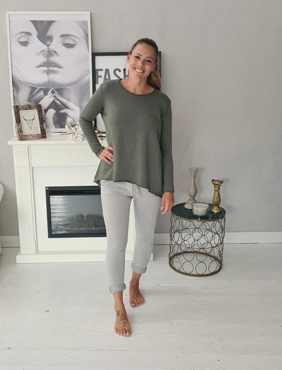 Das Modell auf dem Foto ist 1,70 m groß und trägt Kleidergröße 36