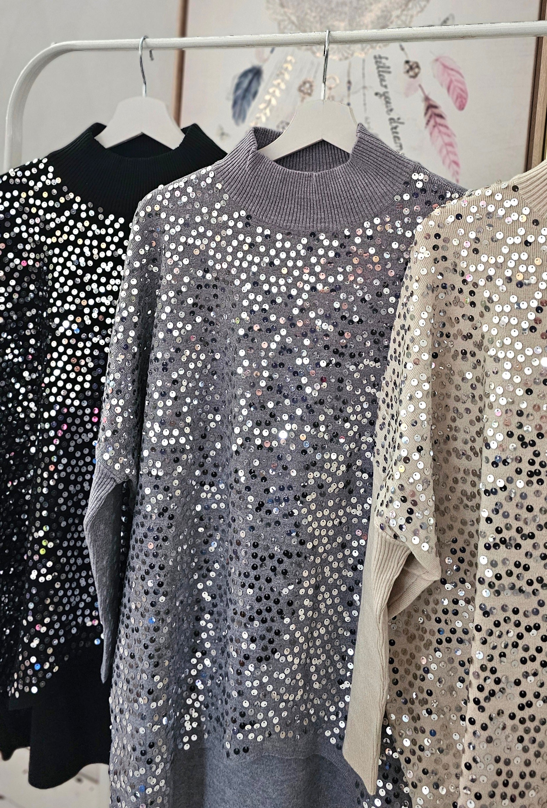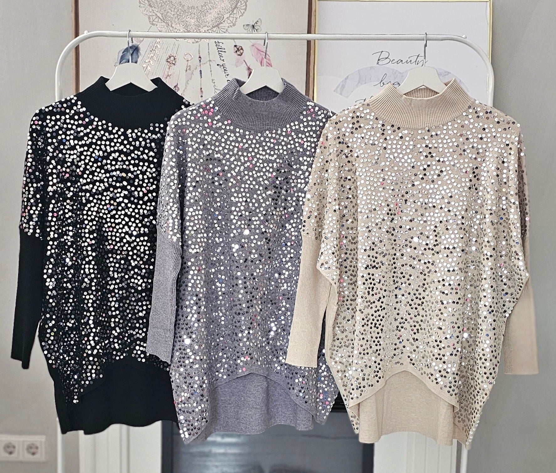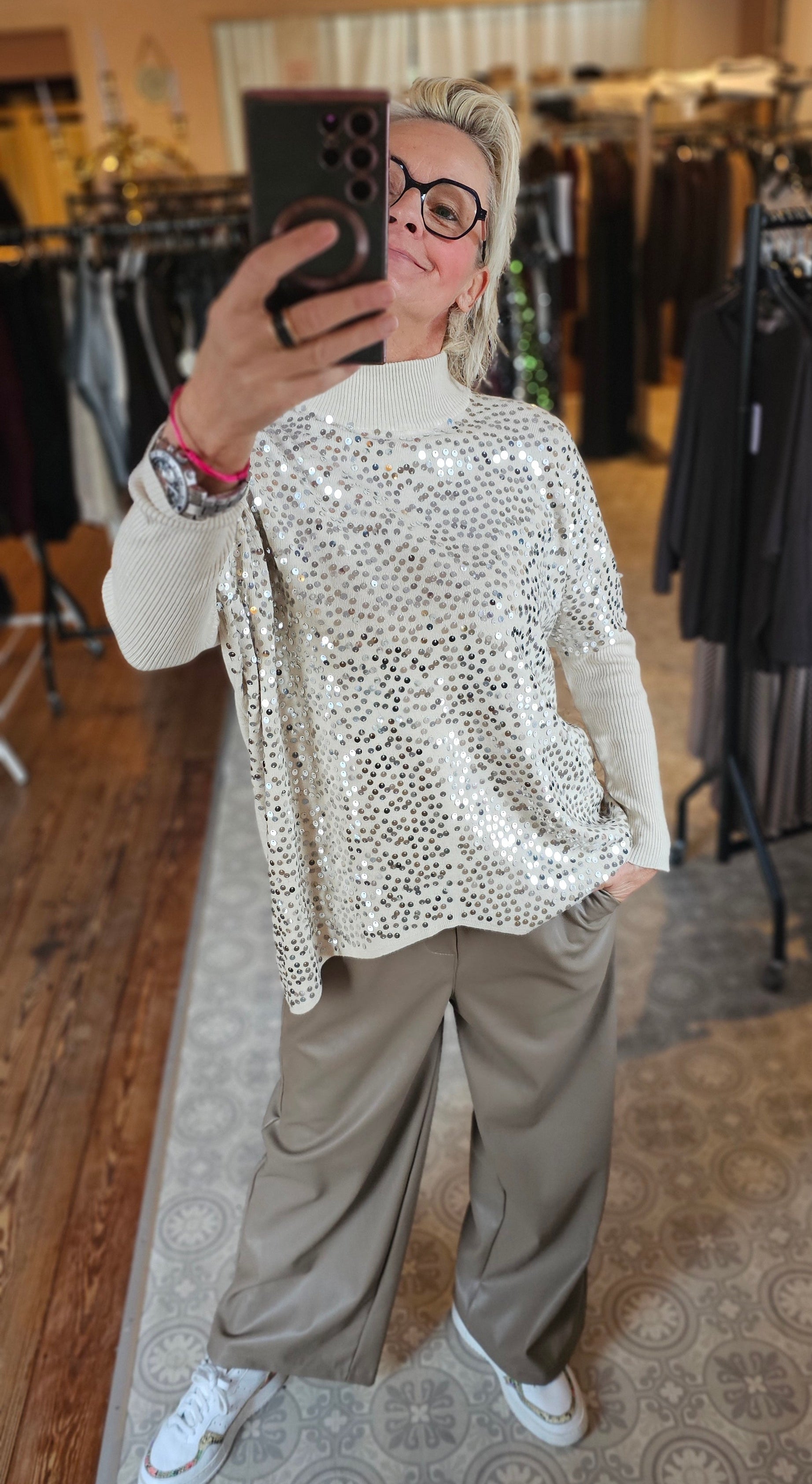 Oversize Long Pullover mit Pailletten Art:4428