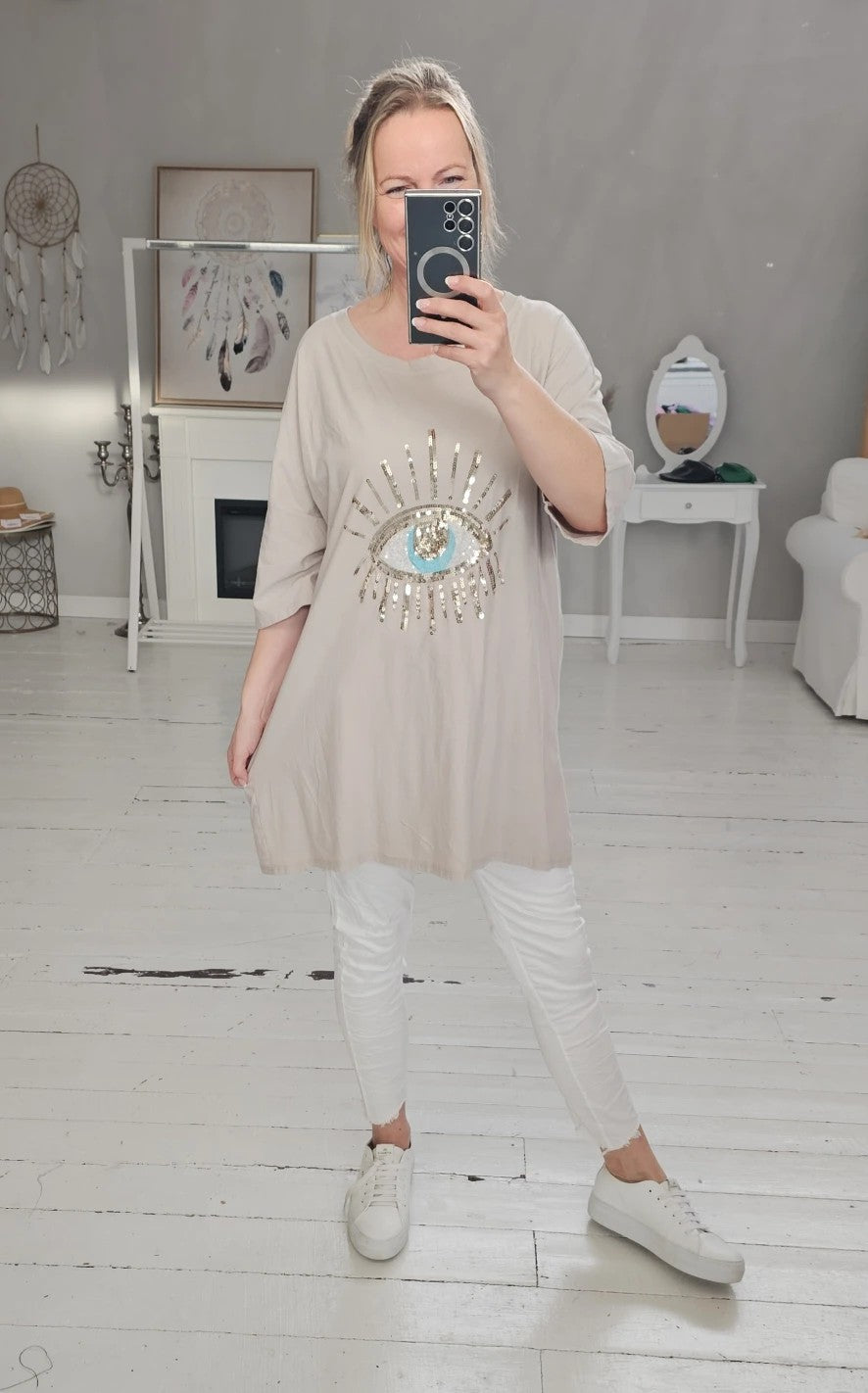 Oversized T-Shirt mit Pailletten Auge