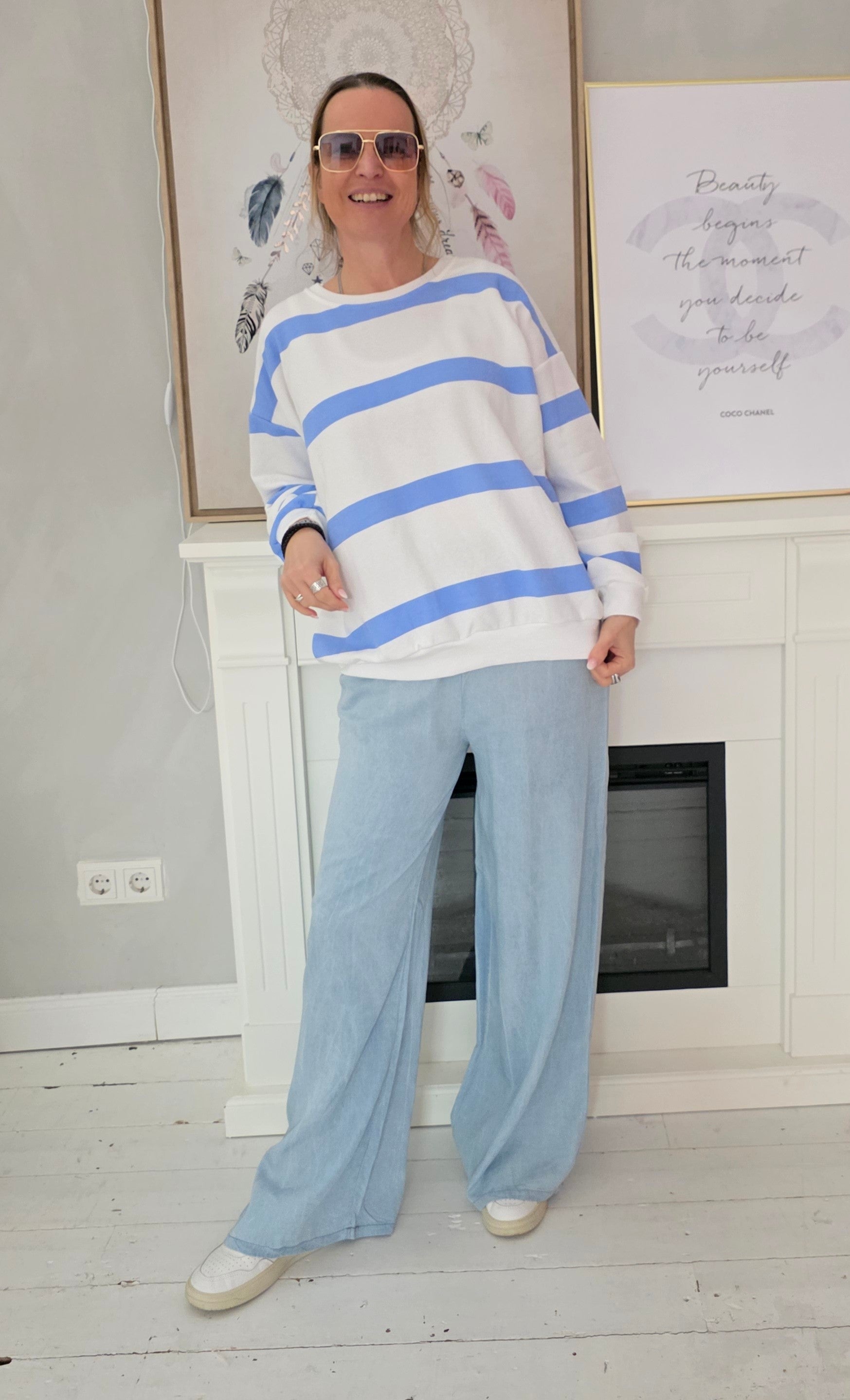 Sweater Long Streifenmotiv